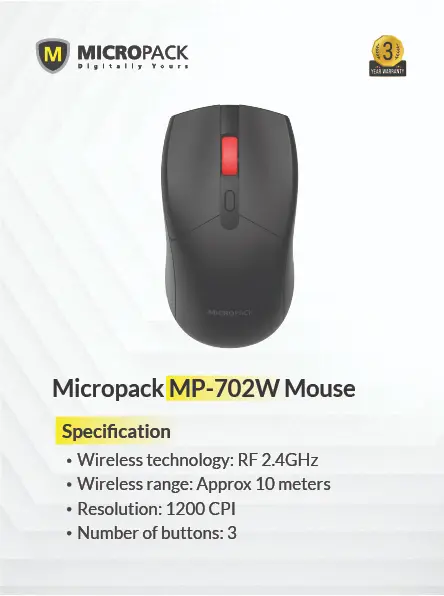 Designed to fit naturally in your hand, Micropack Mouse reduces fatigue and ensures effortless control.